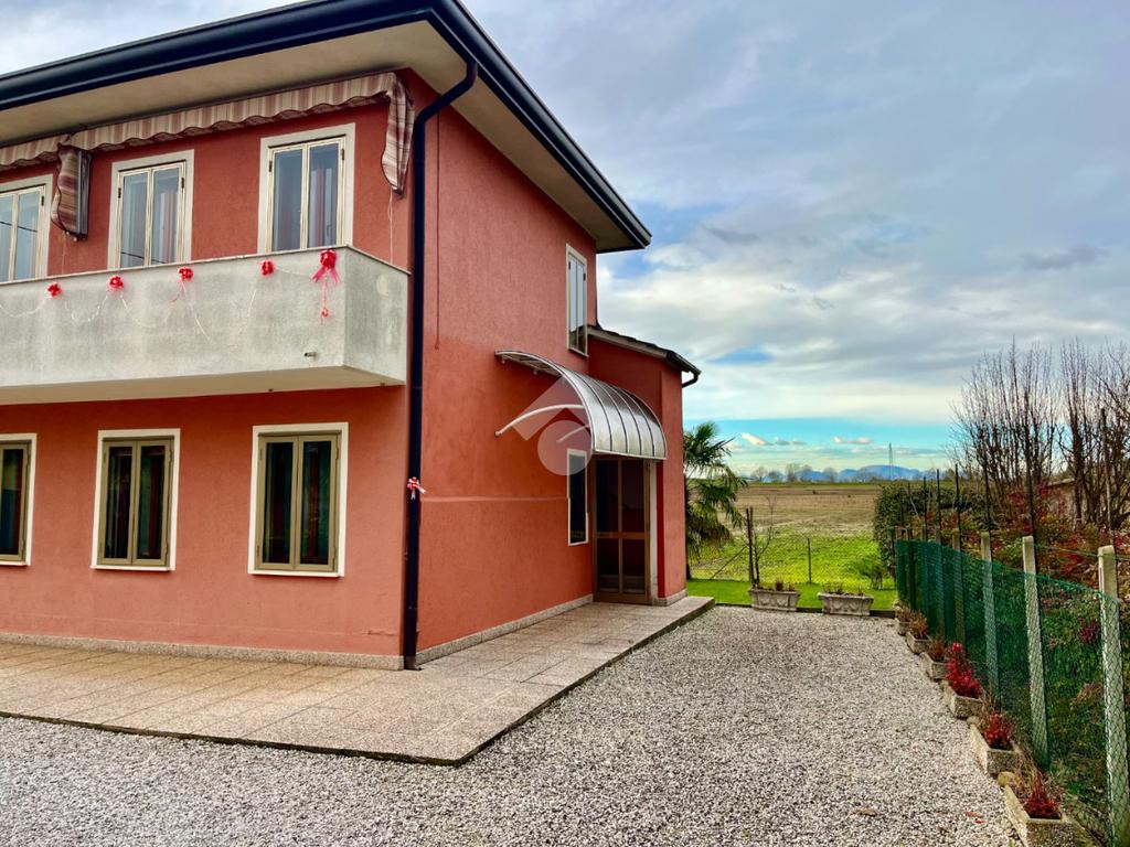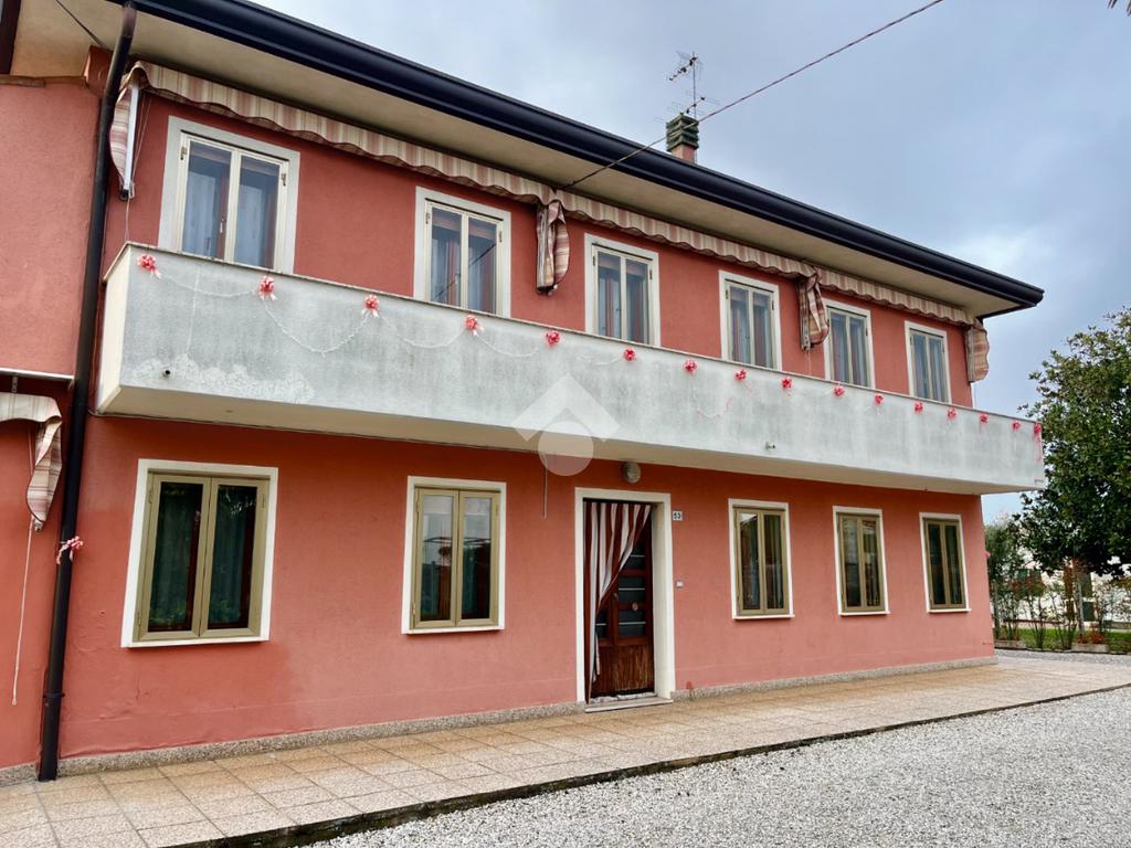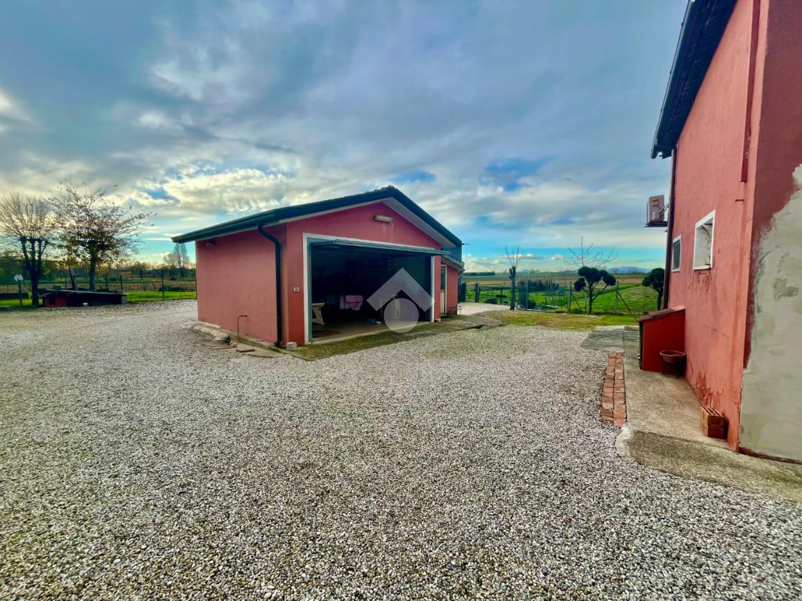 Anguillara Veneta: in zona di campagna località Cà Matte a pochi minuti in macchina dal paese, proponiamo in vendita bifamiliare completamente recitanta con giardino pertinenziale esclusivo di circa 1000 mq, la casa è cosi costituita: al piano terra troviamo l' ingresso, con corriodoio che porta alla zona giorno con sala da pranzo con cucinino, bagno finestrato con doccia, due camere da letto una singola ed una matrimoniale infine al piano terra troviamo un 'altro ambiente con ingresso esterno proprio da adibire eventualmente a taverna. Al piano superiore troviamo gli stessi ambienti speculari al piano terra con il bagno finestrato con vasca e la terrazza di pertinenza. Di proprietà terreni agricoli per 4800 mq, garage di 30 mq e magazzino di 67 mq.