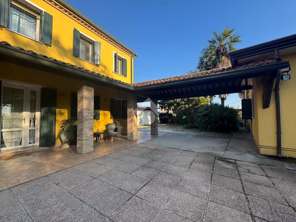 Conselve: In posizione tranquilla e riservata, immersa nel verde della campagna, proponiamo in vendita un'interessante proprietà composta da due unità abitative indipendenti collegate dalla tettoia di 36 mq usata come posto auto, due magazzini, dei quali uno incorporato all'abitazione di circa 154 mq ed il secondo magazzino a corpo staccato di 80 mq. Il tutto circondato da terreno agricolo di 2,300 ettari e da 2,500 mq di terreno pertinenziale piantumato.