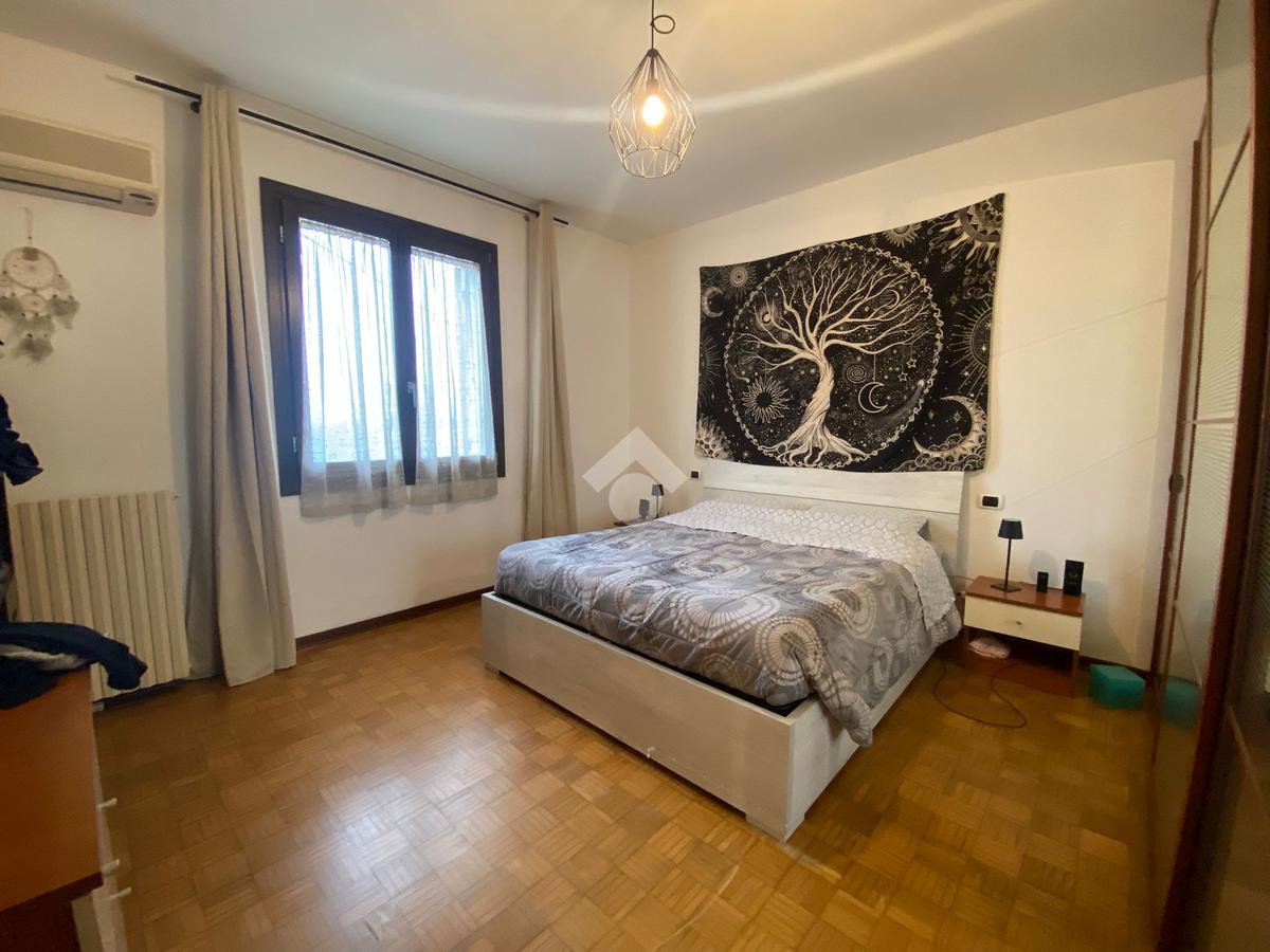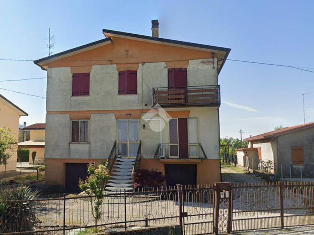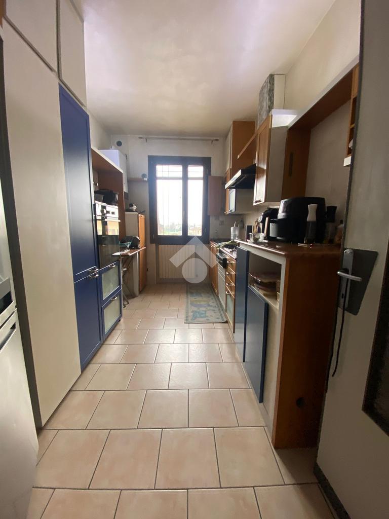 Tribano: Appartamento quadrilocale di 111 mq circa posto al primo piano di bifamiliare orizzontale di sole due unità, completo di garage di 24 mq e cantina adiacente, piccola porzione di terreno agricolo situato all'interno del lotto dell'abitazione di circa 80 mq. L'appartamento, dotato di ingresso indipendente, si sviluppa su tutto il primo piano e precisamente: corridoio d'ingresso dal quale è possibile accedere alla cucina finestrata con arredamento compreso, il soggiorno con poggiolo annesso, due camere matrimoniali, una camera singola ed il bagno finestrato con arredata e stufa a pellet inclusi nella vendita. A completare garage posto sotto l'abitazione di facile accesso, cantina e terreno agricolo di 80 mq.