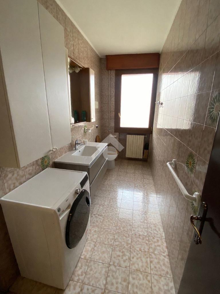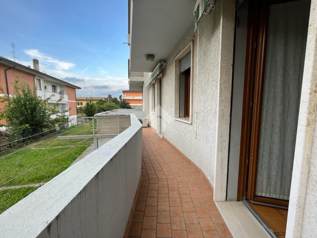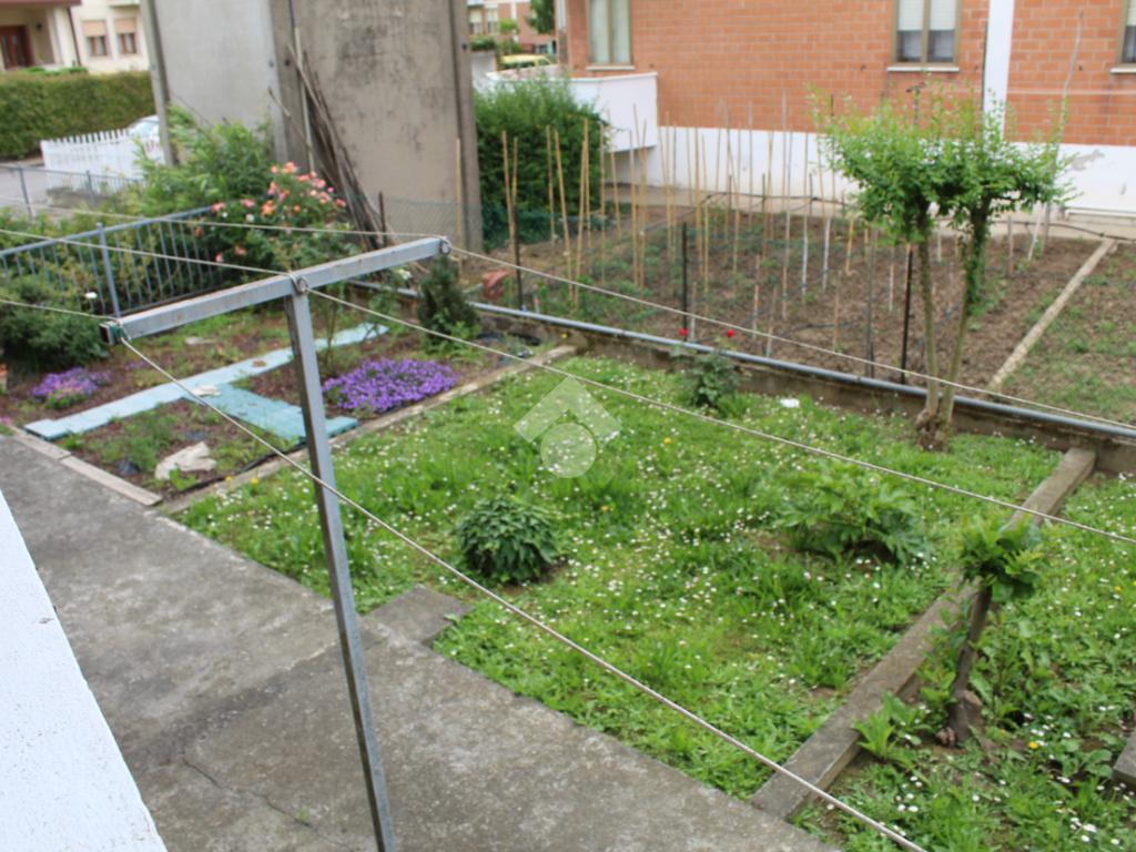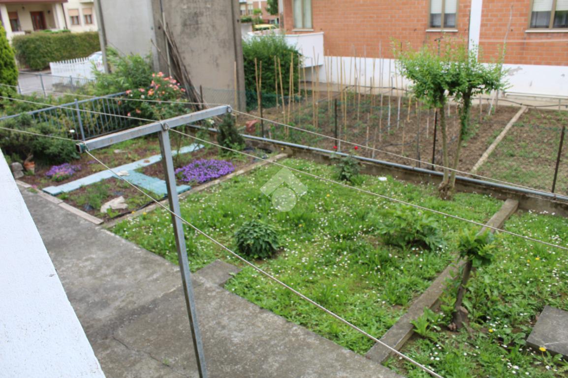 TRIBANO: in quartiere residenziale e comodo a tutti i servizi del paese in pochi minuti a piedi, appartamento bilocale al piano rialzato di 63 mq circa. Risulta così composto: ingresso soggiorno con uscita sul terrazzo, e separato cucinotto abitabile. Nella zona notte troviamo un disimpegno che porta al bagno finestrato con doccia, camera matrimoniale con uscita sul terrazzo di pertinenza che si allarga a formare un pianerottolo rispetto agli altri affacci della casa, ed infine a completare l'abitazione il ripostiglio cieco. Presente il garage singolo, di proprietà al piano interrato ed un piccolo appezzamento di giardino privato ad uso orto. Serramenti interni cambiati nel 2016, dotata di climatizzazione estiva e di tende da sole. Spazioso giardino condominiale.