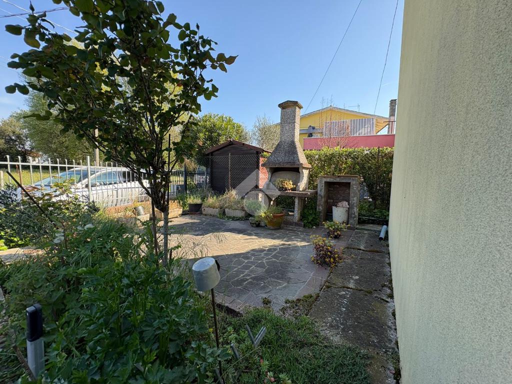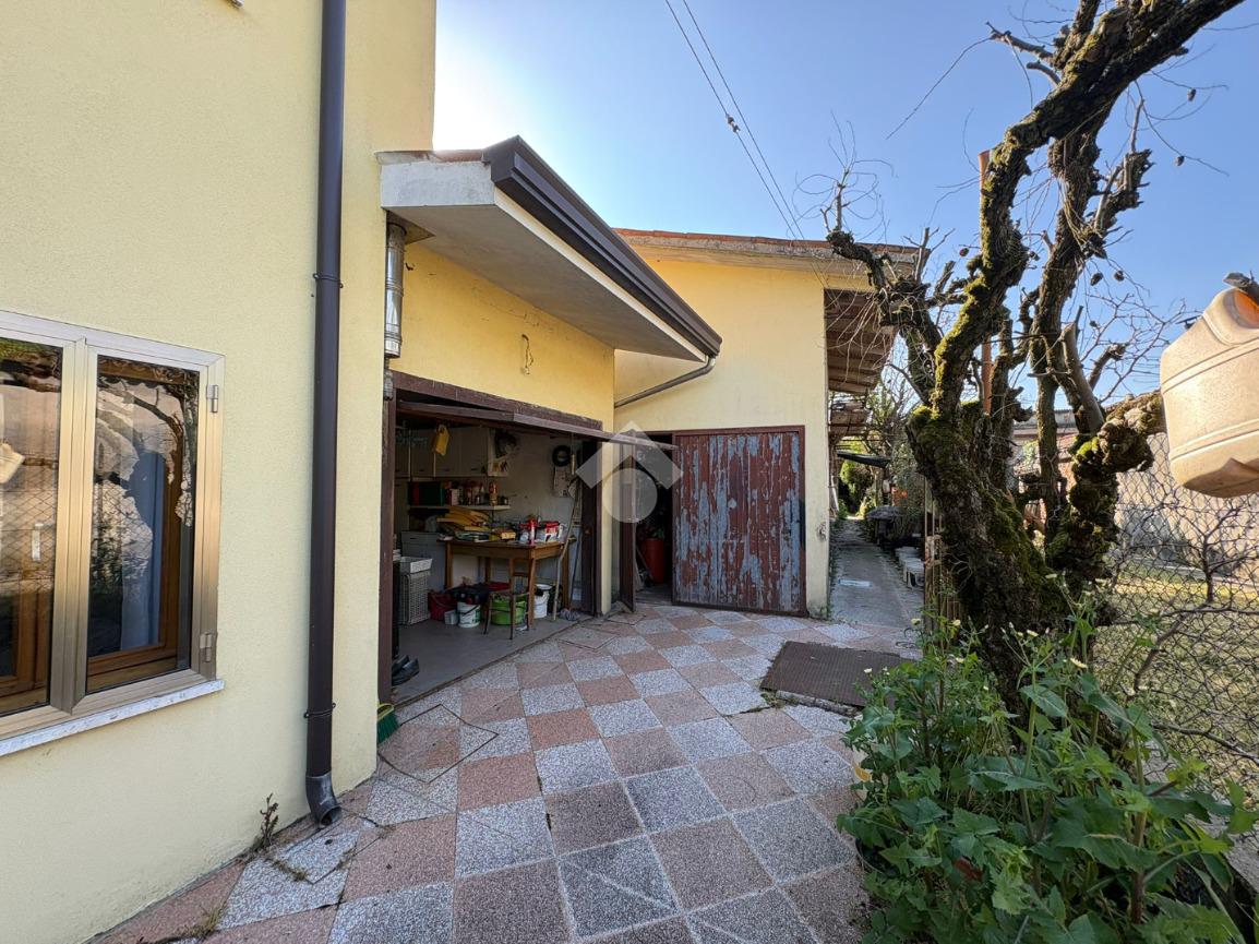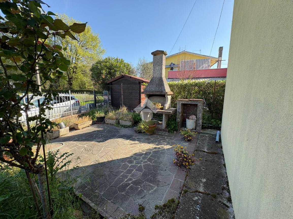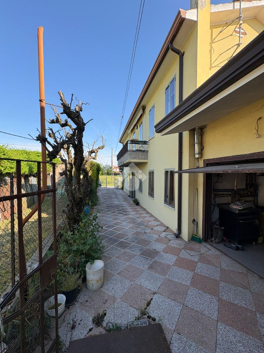 Tribano: in zona di campagna tranquilla proponiamo abitazione indipendente sviluppata su due piani con esterno pavimentato e terreno di 550 mq. La casa in posizione perpendicolare rispetto alla strada presenta l'ingresso carrabile e pedonale pavimentato con un piccolo spazio fronte strada adibito a barbecue, l'ingresso ampio con disimpegno conduce alla cucina abitabile, bagno ristrutturato con doccia , un piccolo ripostiglio nel sottoscala, ed al soggiorno utilizzato attualmente come camera da letto al piano terra. Attraverso la scala interna si raggiunge la zona notte dove troviamo altre due stanze matrimoniali con bagno padronale finestrato con vasca. All'esterno garage singolo, con magazzino ampio separato ed altri annessi rustici infine di proprietà appezzamento di terra di proprietà di 550 mq. Impianto elettrico e caldaia sostiuiti recentemente, riscaldamento autonomo e bagni ristrutturati da pochi anni. A pochi minuti d'auto si raggiungono i principali centri abitati.